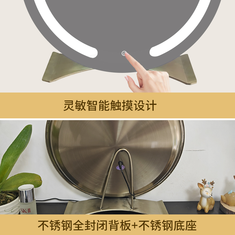 不锈钢台式 大号可充电智能化妆镜带灯梳妆台镜桌面带底座梳妆镜子