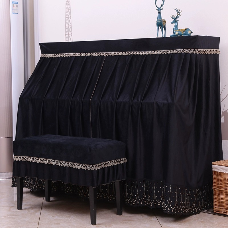 轻奢黑色丝绒布钢琴罩盖布半罩现代简约防尘罩全罩凳套罩