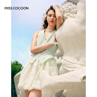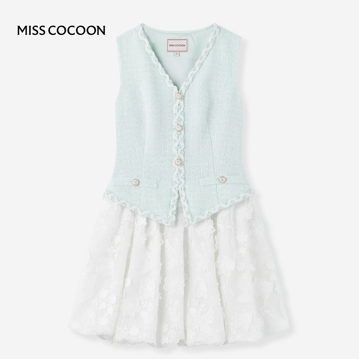 气质穿搭裙子 新款 MISS COCOON可可尼假两件小香风连衣裙2025夏季