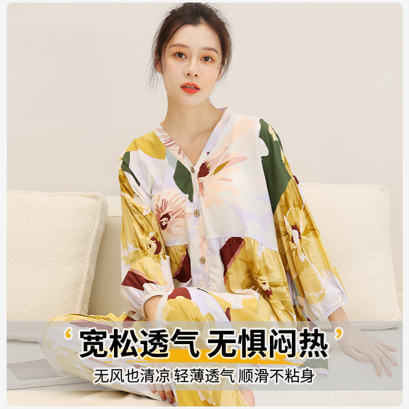 家居服套装 2025年新款 夏天棉绸长袖 薄款 空调服 春秋绵绸睡衣女夏款