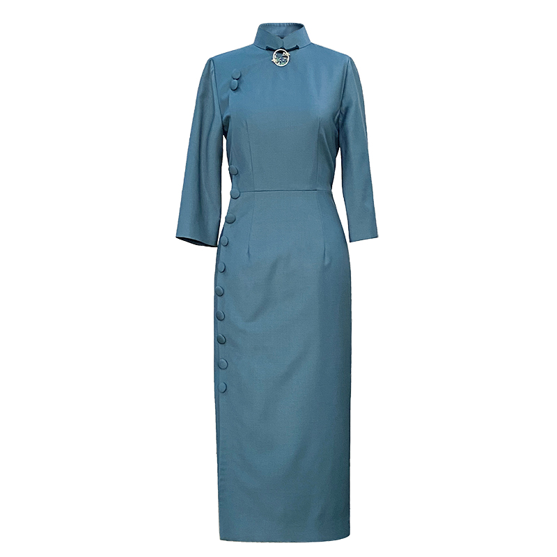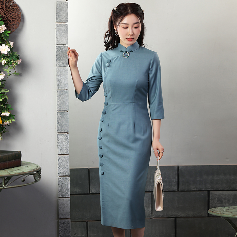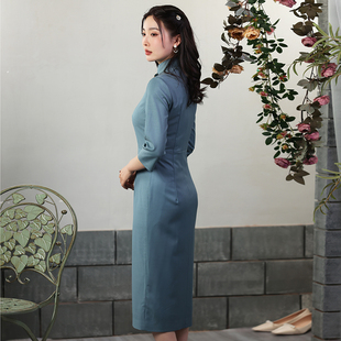 蝶恋旗袍春秋复古中式 日常崔万志旗袍连衣裙女 改良羊毛旗袍修身