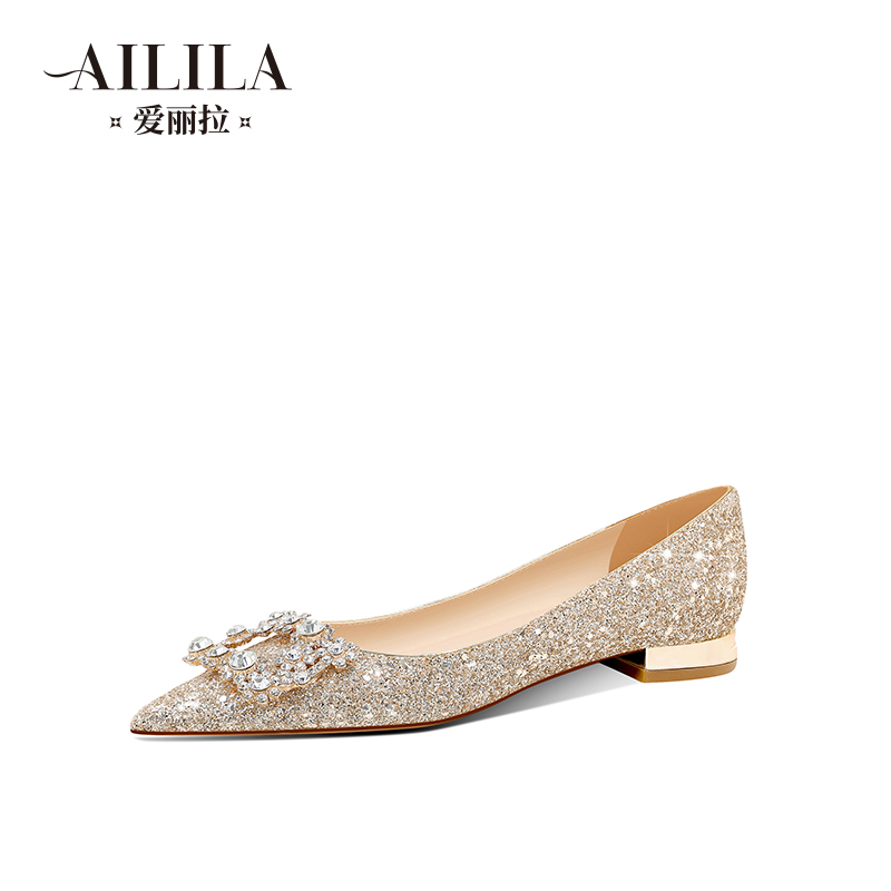 新娘鞋 春季 禾秀主婚纱两穿不累脚 女2025新款 爱丽拉金色平底结婚鞋