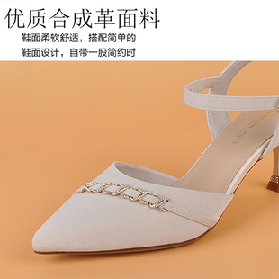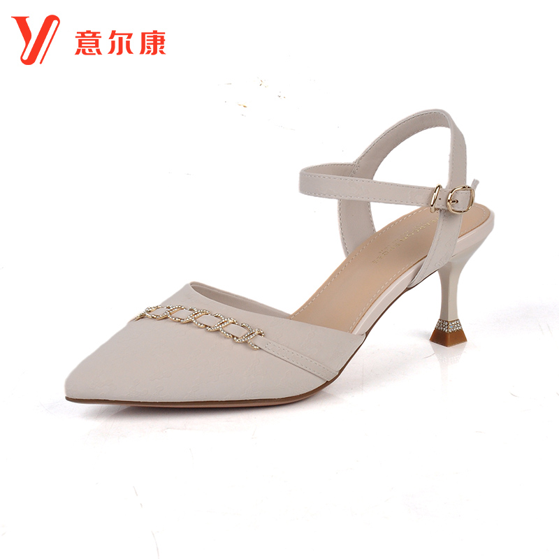 高跟凉鞋 意尔康2023夏季 包头仙女一字扣尖头时装 女鞋 女细跟 新款