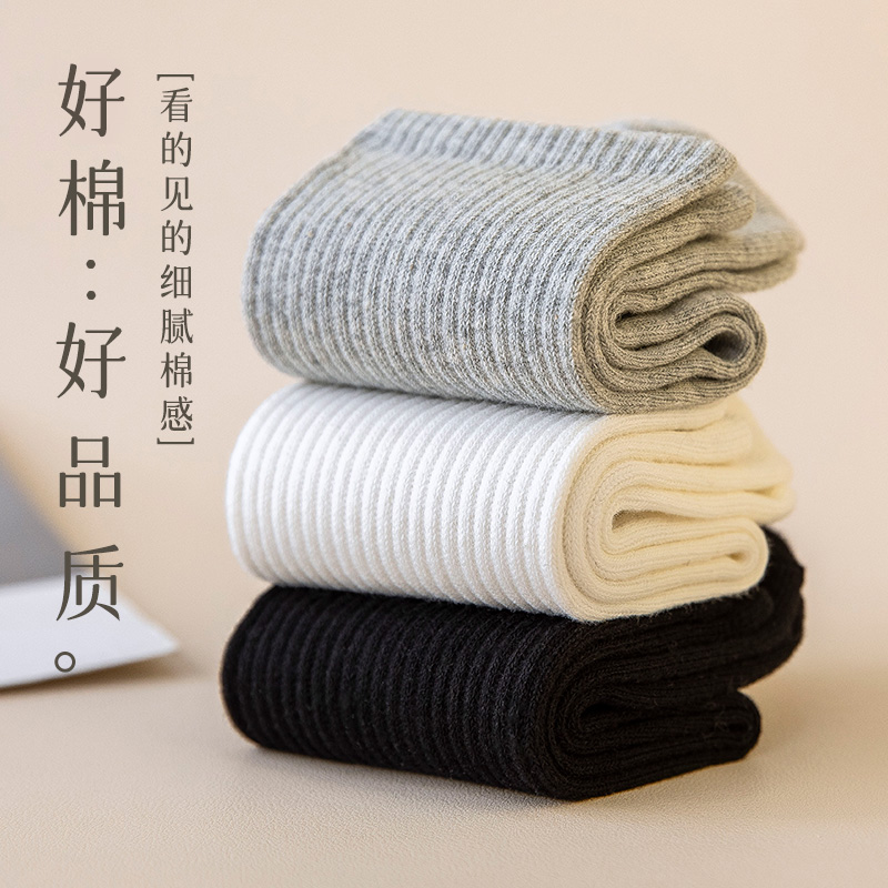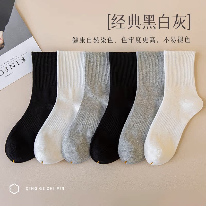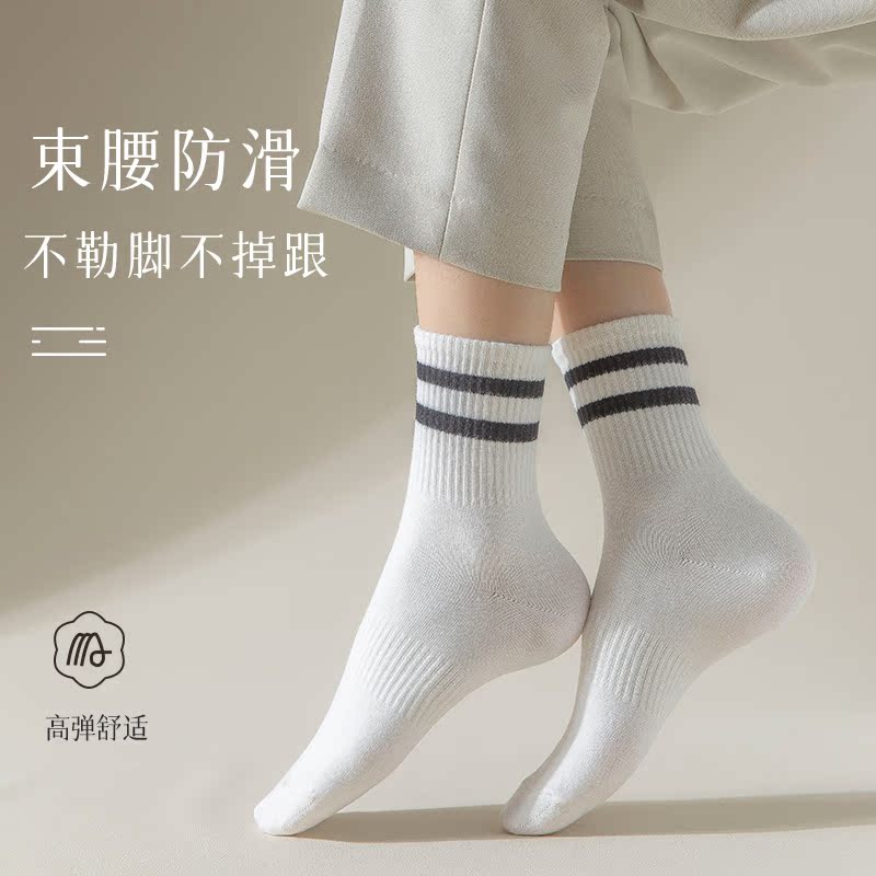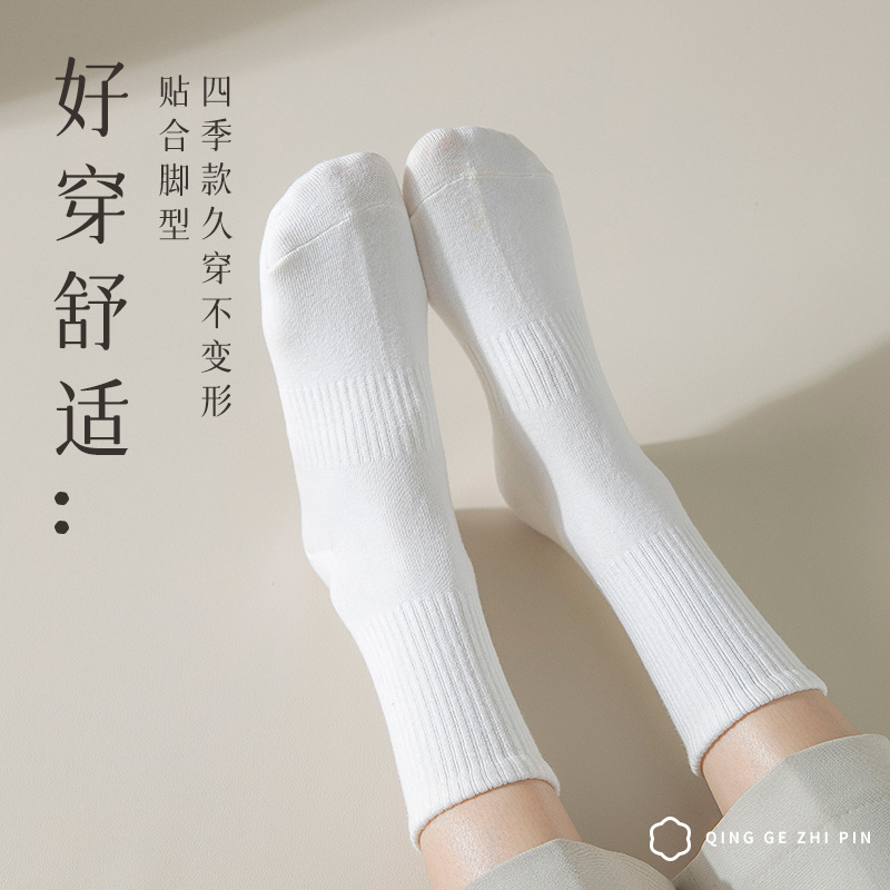 白色袜子女春秋款 透气防臭黑色全棉女士长袜 纯棉中高筒运动潮夏季