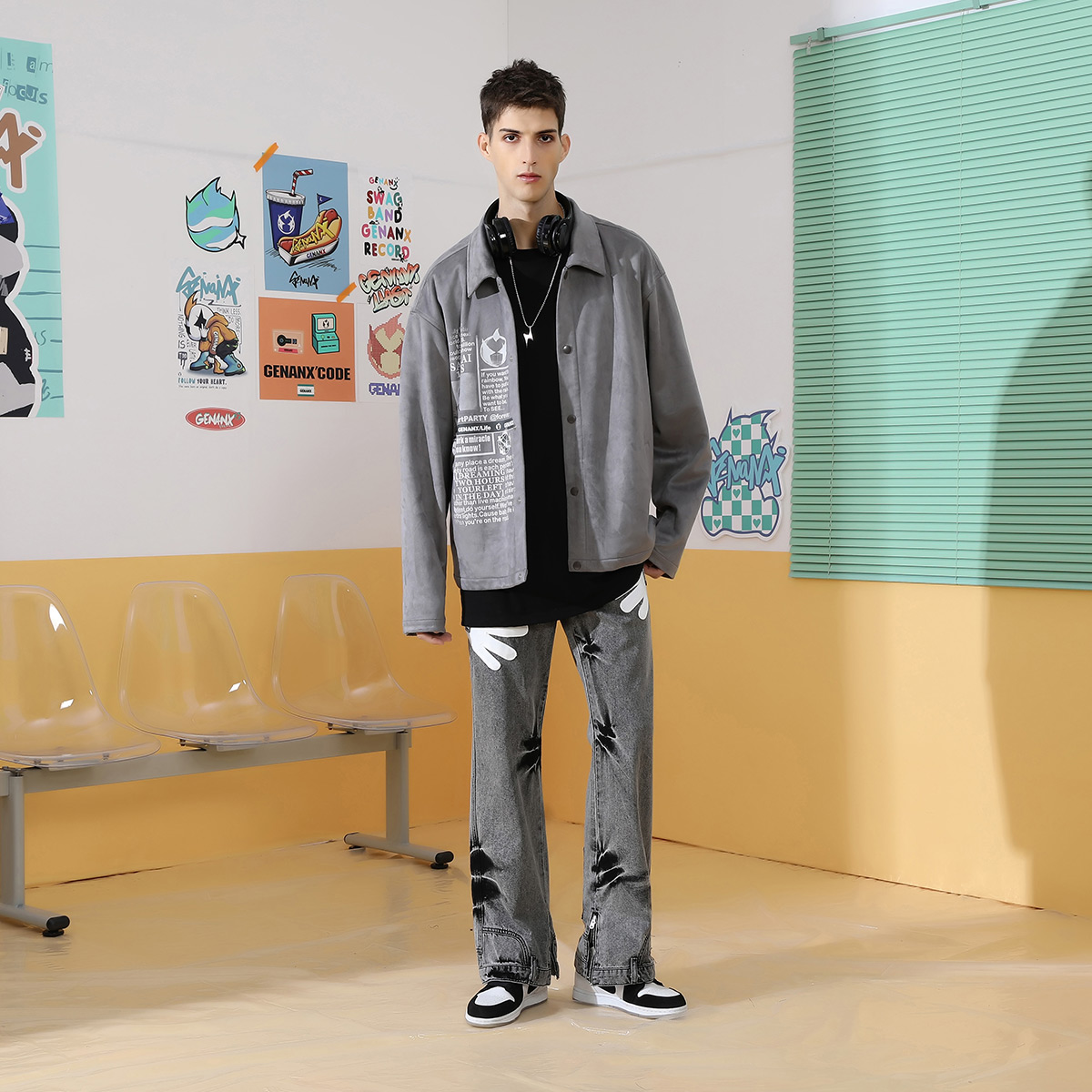 牛仔衣 工装 高级感防褪色原色水洗牛仔外套男宽松大码 翻领夹克新款