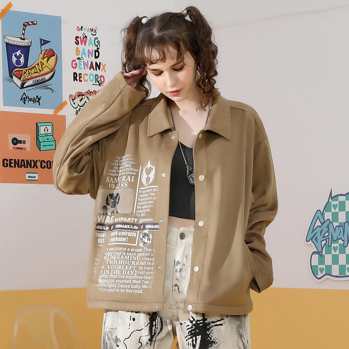 外套潮牌新款 水洗牛仔花卉重工刺绣短款 翻领夹克 Achock官方店
