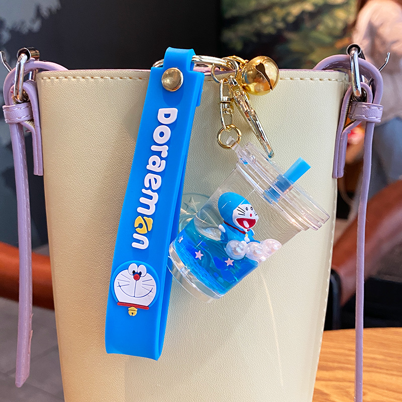 入油流沙瓶钥匙扣多啦A梦玩偶公仔精致可爱女背包挂件汽车链挂饰