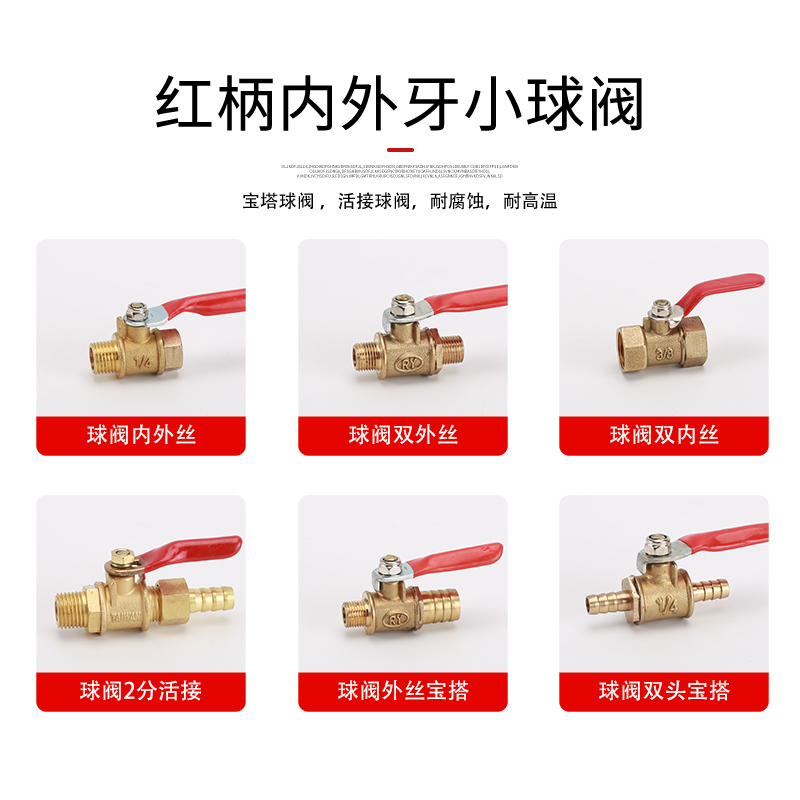 红柄球阀铜格林宝塔快插1分2分3分加厚内外丝外螺纹直通阀门开关