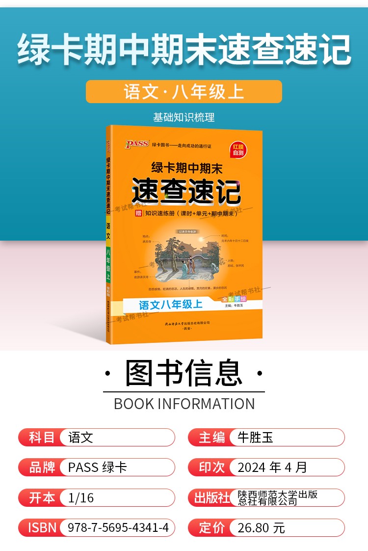 2025学霸期中期末速查速记八年级上册全一册语数英政史地生人教版 初中必背知识点复习资料备考基础知识清单手册 湘教版