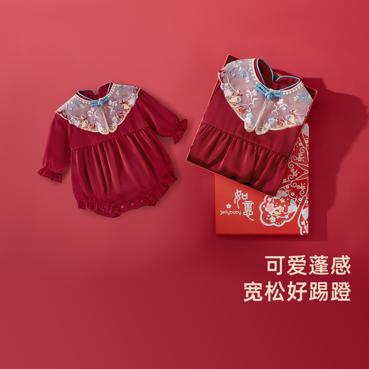 宝宝秋季 包屁衣新生儿秋冬满月衣服女童连体衣 哈衣婴幼儿红色秋装