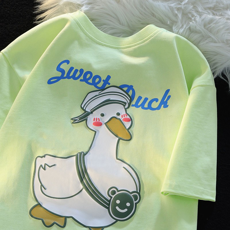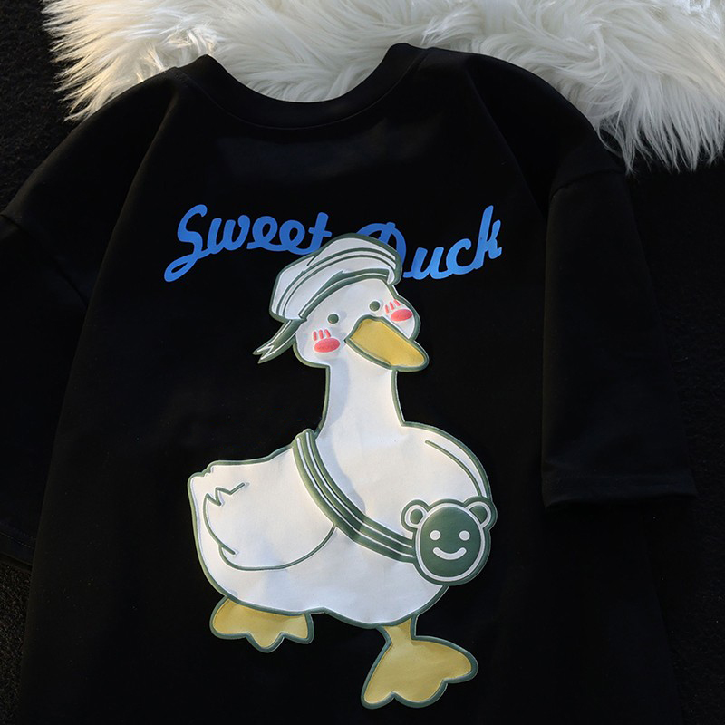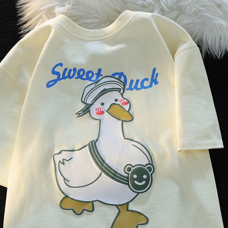 痞帅百搭半截袖 T恤男女夏季 情侣上衣 300斤趣味大鹅印花短袖 特大码
