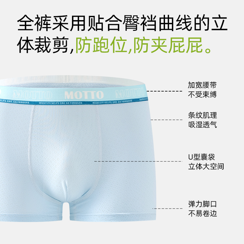 冰丝透气四角短裤 3件 莫代尔大码 平角内裤 男生 蕉内银皮500E男士