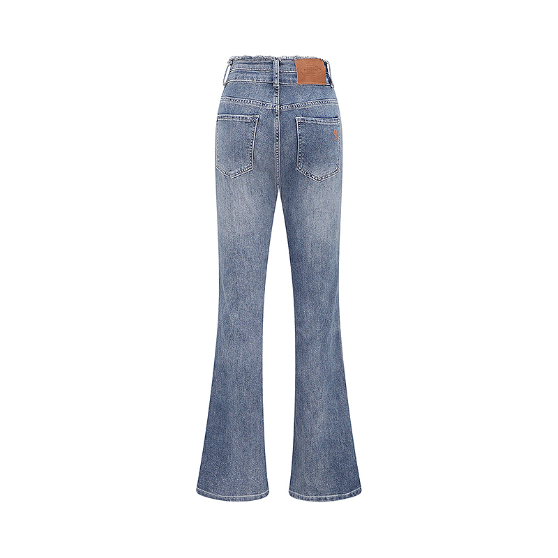 高腰双扣 PetitBari 牛仔长裤 修身 显瘦 女士腰头毛边喇叭裤