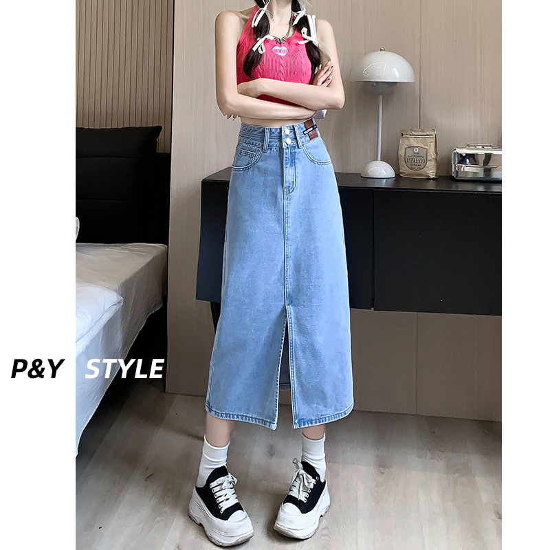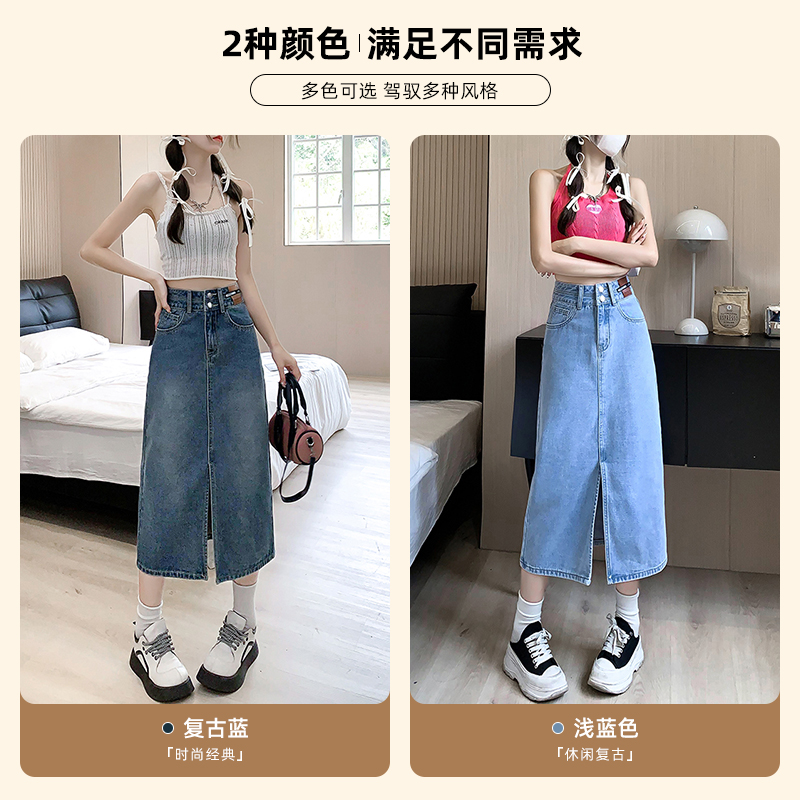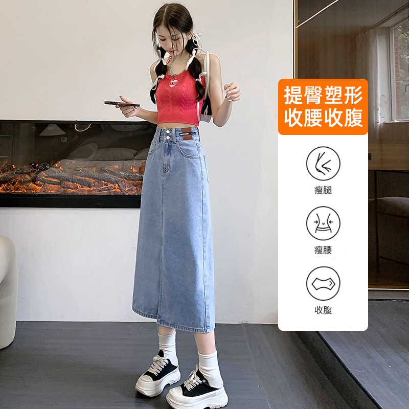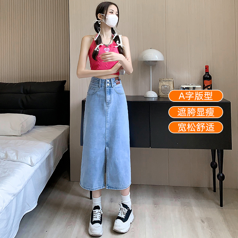 浅色开叉牛仔半身裙女夏2025新款 包臀半裙 高腰宽松显瘦a字中长款