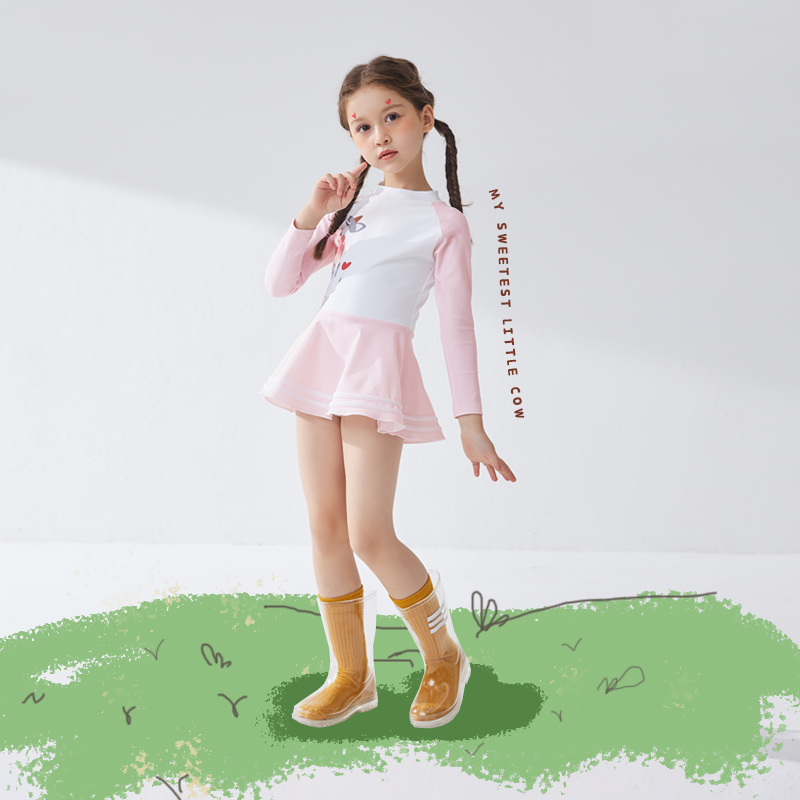 飞鱼未来儿童泳衣女孩新款 游泳馆专用水上乐园游泳衣 防晒连体长袖