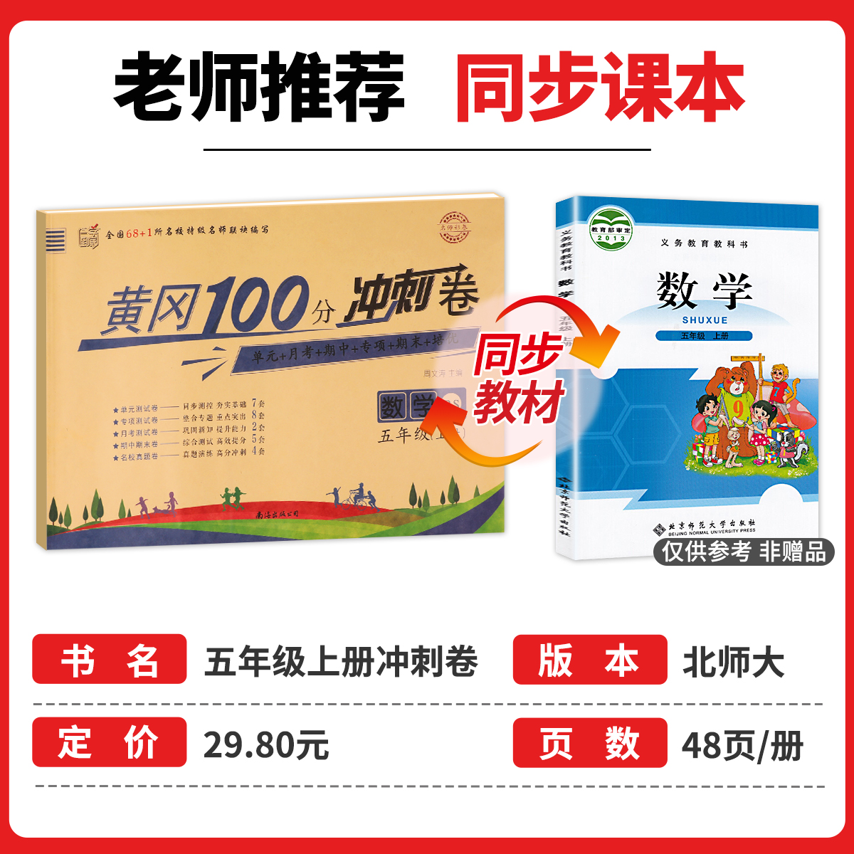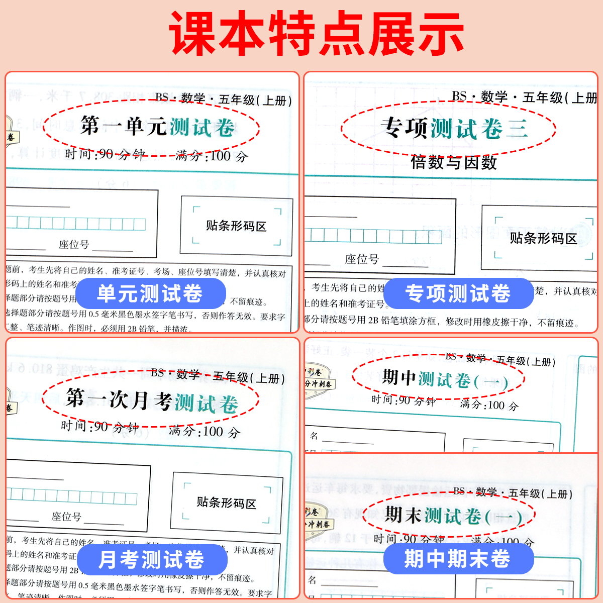 课本教材五上单元 小学生5年级上数学试卷考试卷子真题同步北师版 测试卷全套课堂检测练习册 五年级上册黄冈100分冲刺卷BS 北师大版