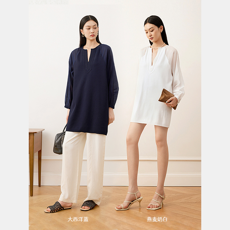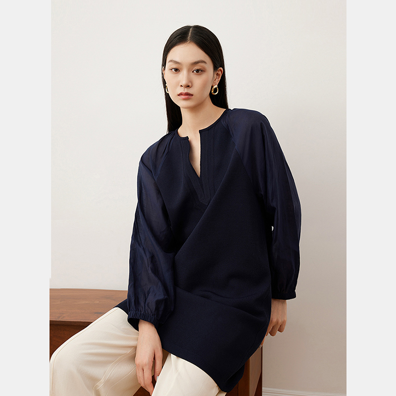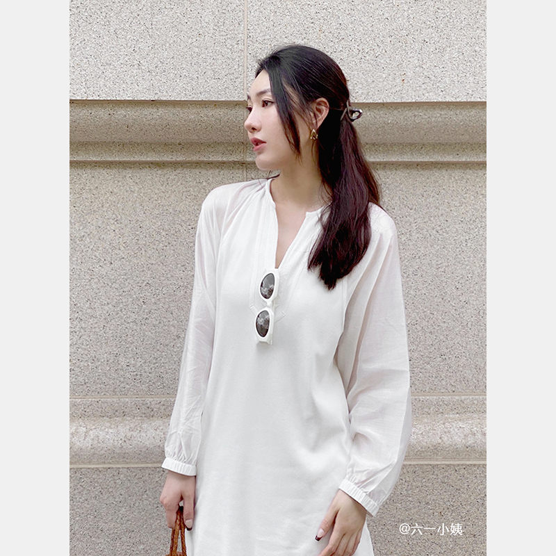 宽松气质约会优雅裙子 灯笼袖 羊织道波拉 漂亮连衣裙深V领直筒修身