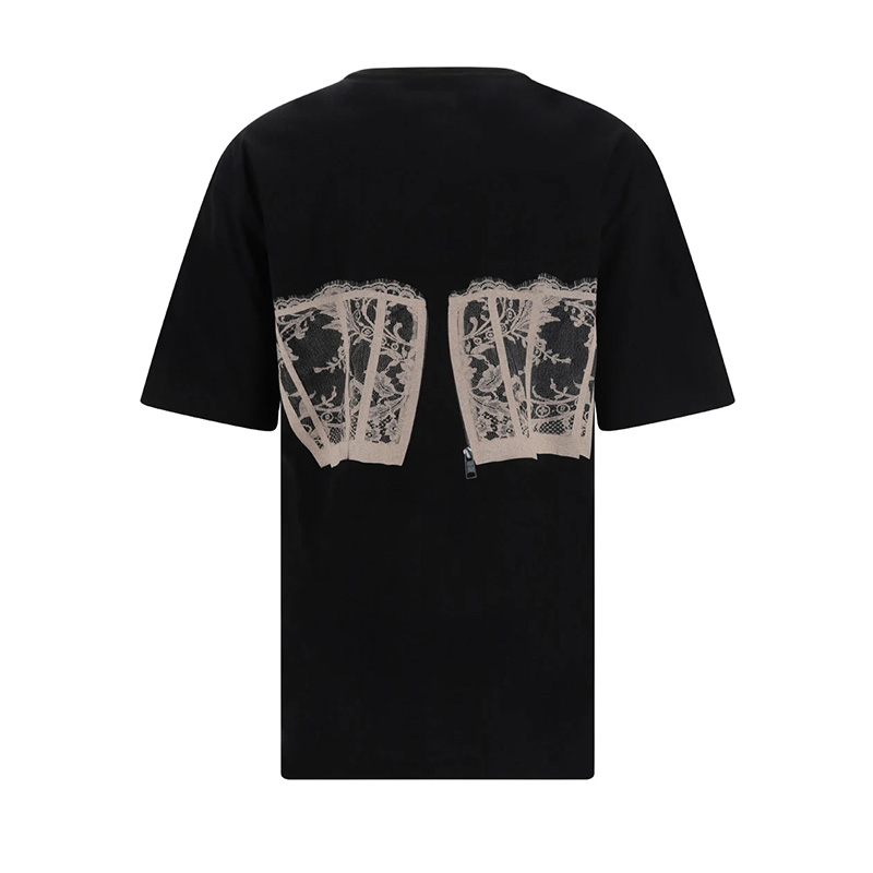轻奢风上衣夏新款 T恤女 蕾丝抹胸印花上衣气质减龄宽松显瘦短袖