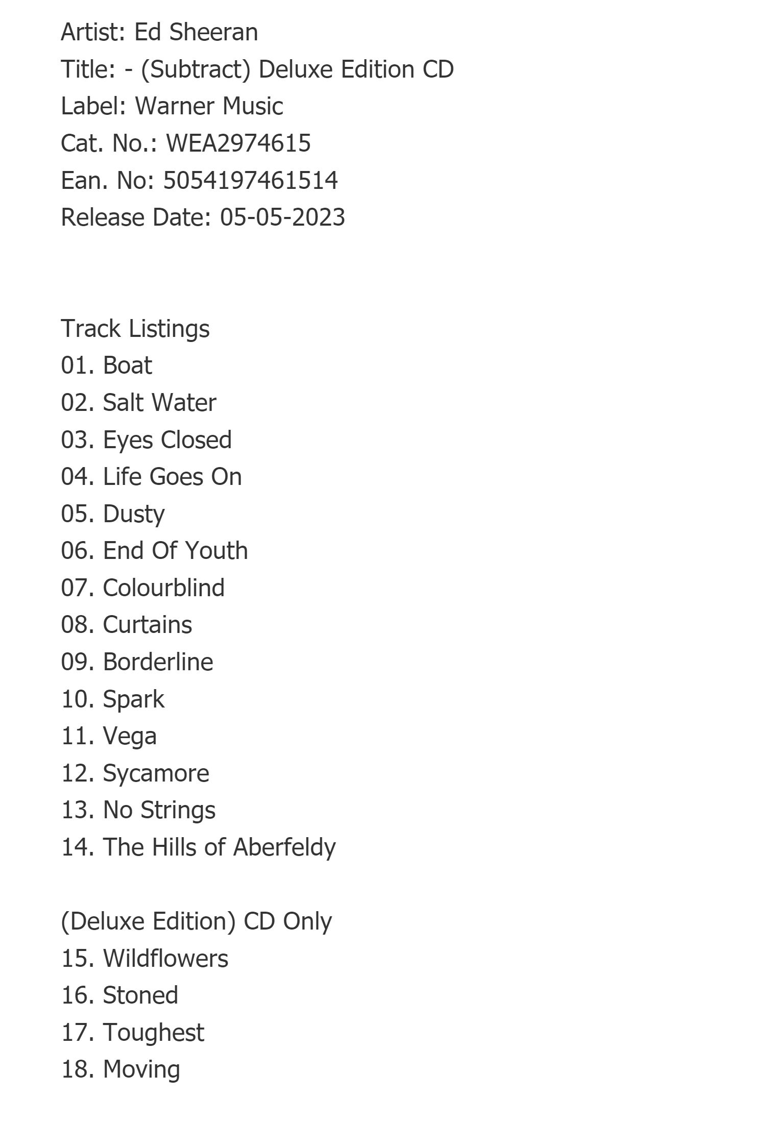 Sheeran 减号 现货 CD豪华版 艾德希兰专辑 Subtract 黄老板