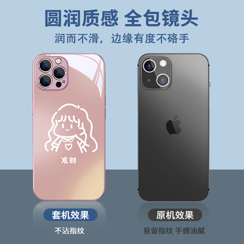 情侣手机壳iPhone15Promax新款 苹果16简约14pro线条17发财xs高级感12创意13小众11一对8plus镜面air玻璃xr套