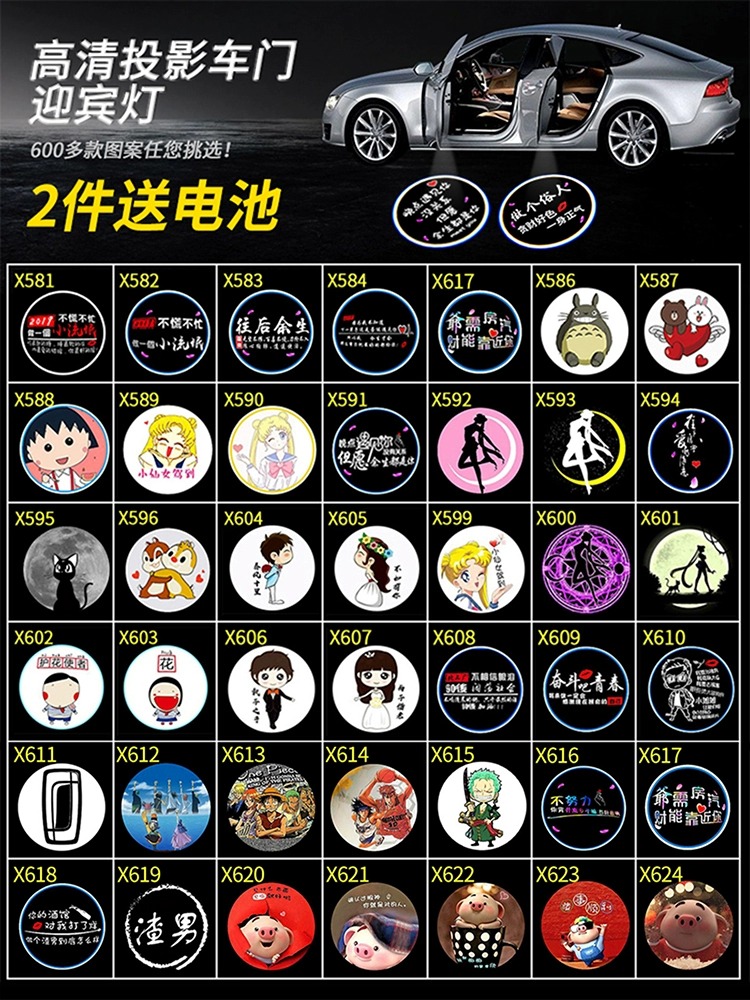 汽车车门投影灯无线车门感应灯高清卡通美少女战士迎宾灯装 饰&8