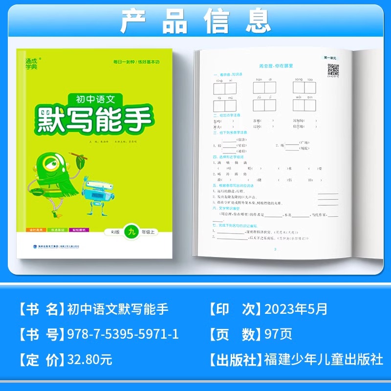 通城学典初中语文默写能手八年级下册人教版 社 五四学制8年级第二学期语文专项训练每日一分钟练好基本功含参考答案延边大学出版