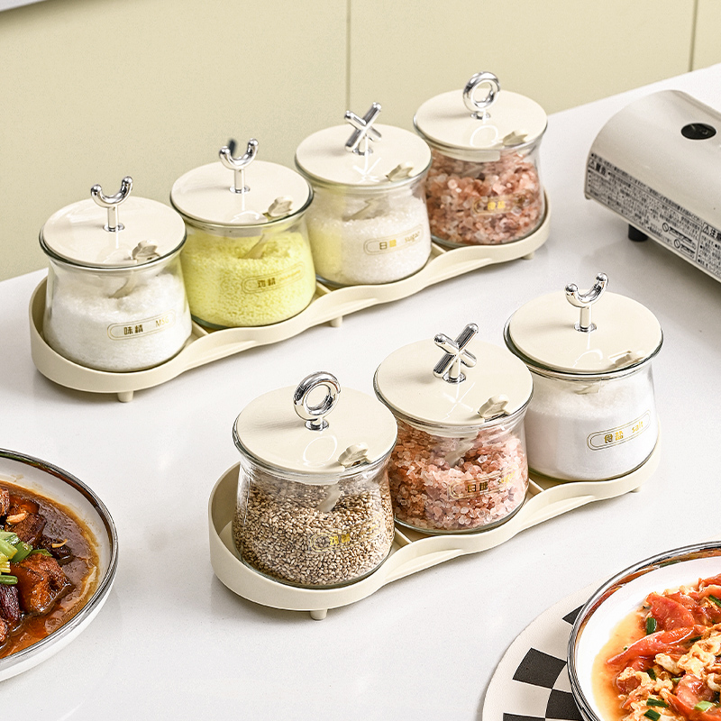 厨房调料瓶套装 奶油风家用盐罐子味精佐料罐组合玻璃调味品收纳盒