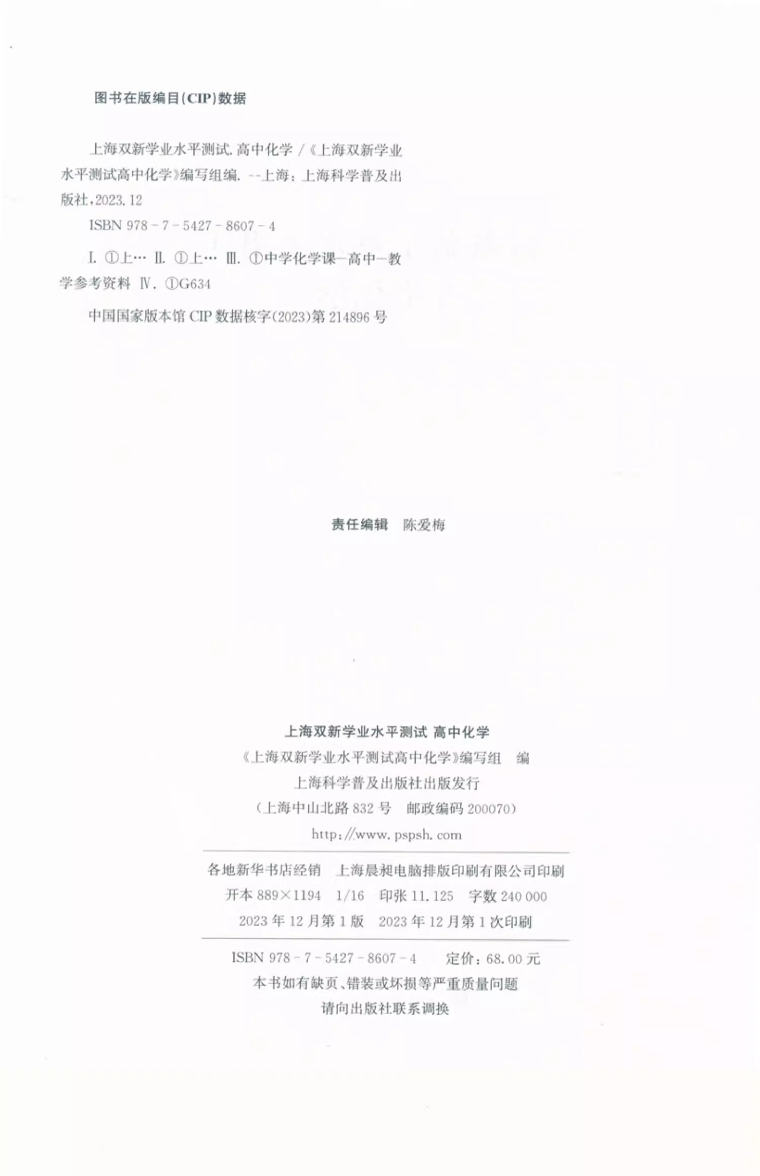 上海科学普及出版 2024版 答案上海高中合格考化学复习用书合格考化学 电子版 社 上海双新高中化学学业水平测试附赠模拟试卷