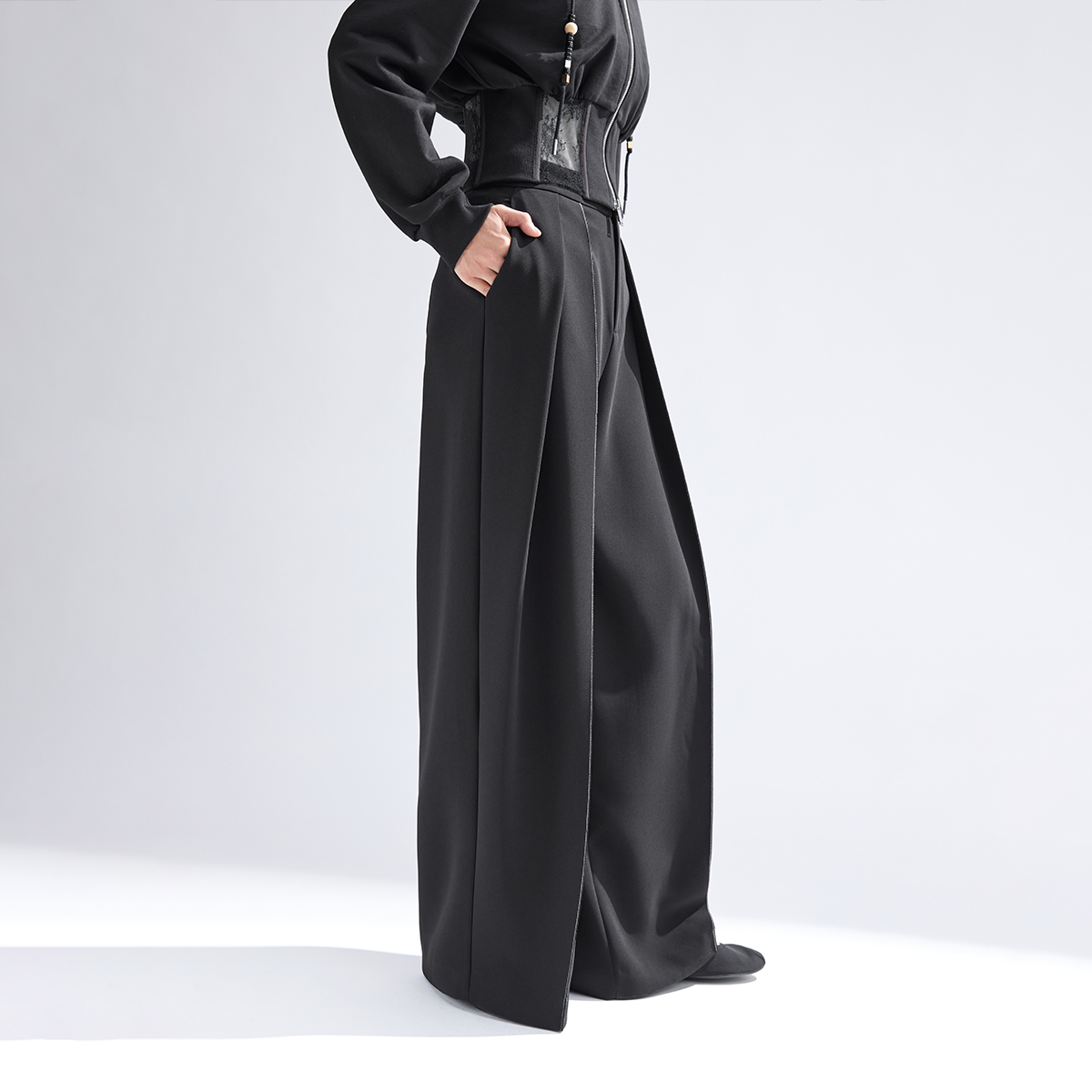 攀洛休闲弯刀阔腿裤