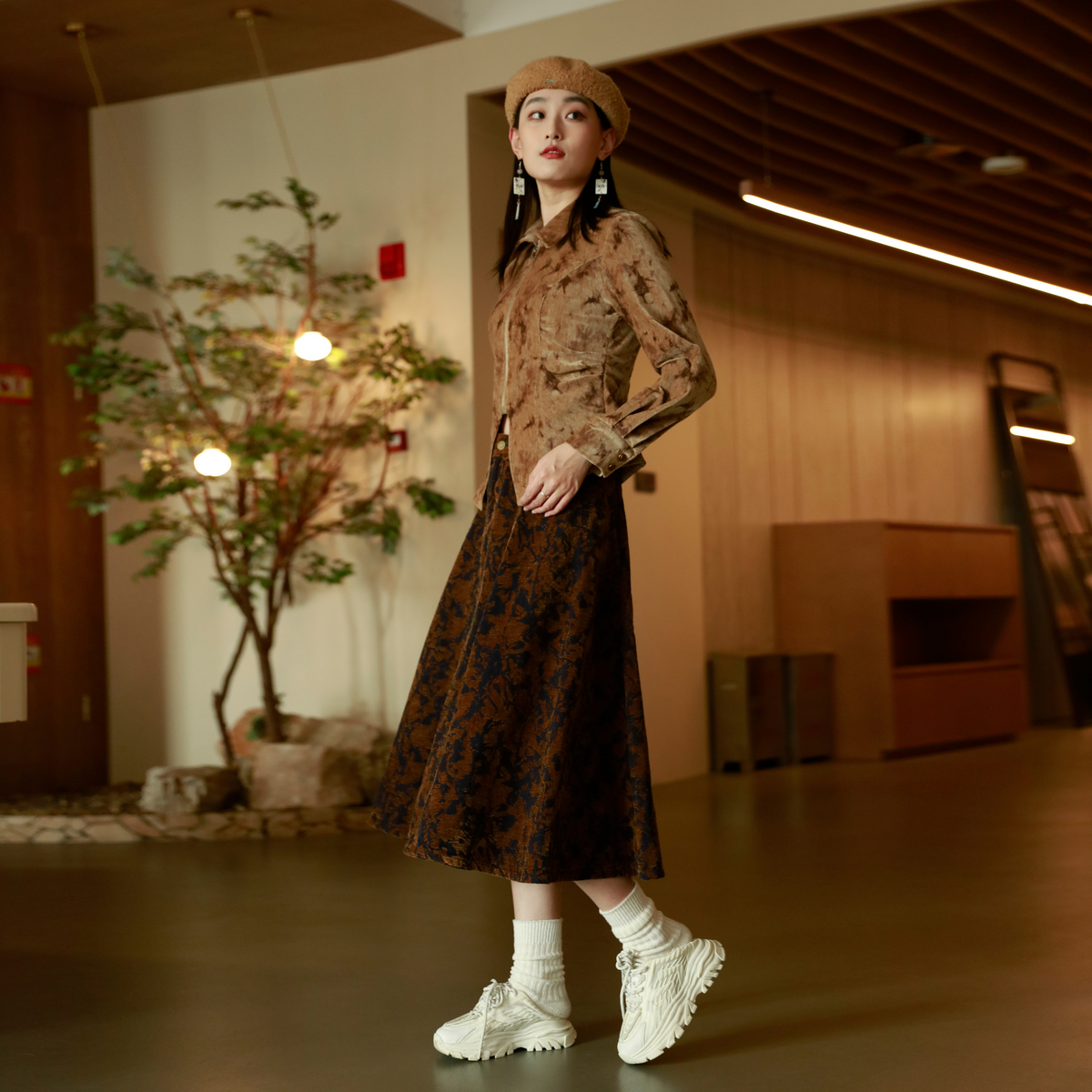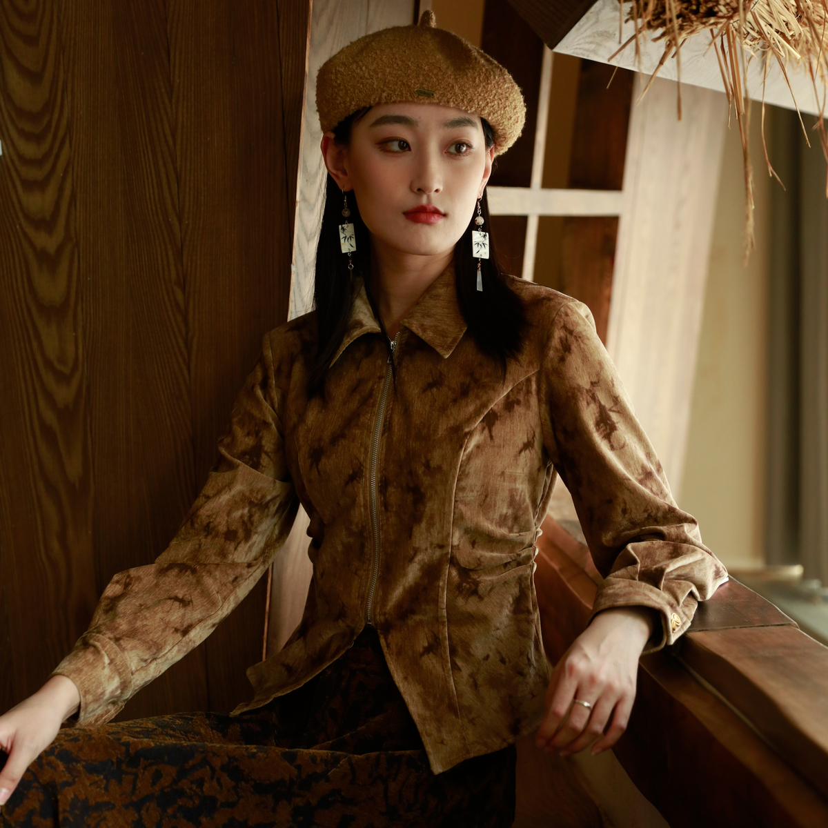 长袖 西町村屋衬衫 复古翻领文艺扎染修身 新款 衬衣HD8103012 女冬季