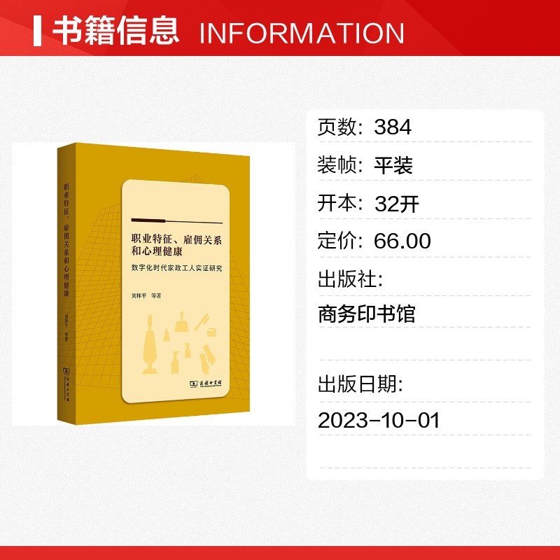 人力资源经管 商务印书馆 数字化时代家政工人实证研究 图书籍 新华书店正版 励志 著 等 刘林平 雇佣关系和心理健康 职业特征
