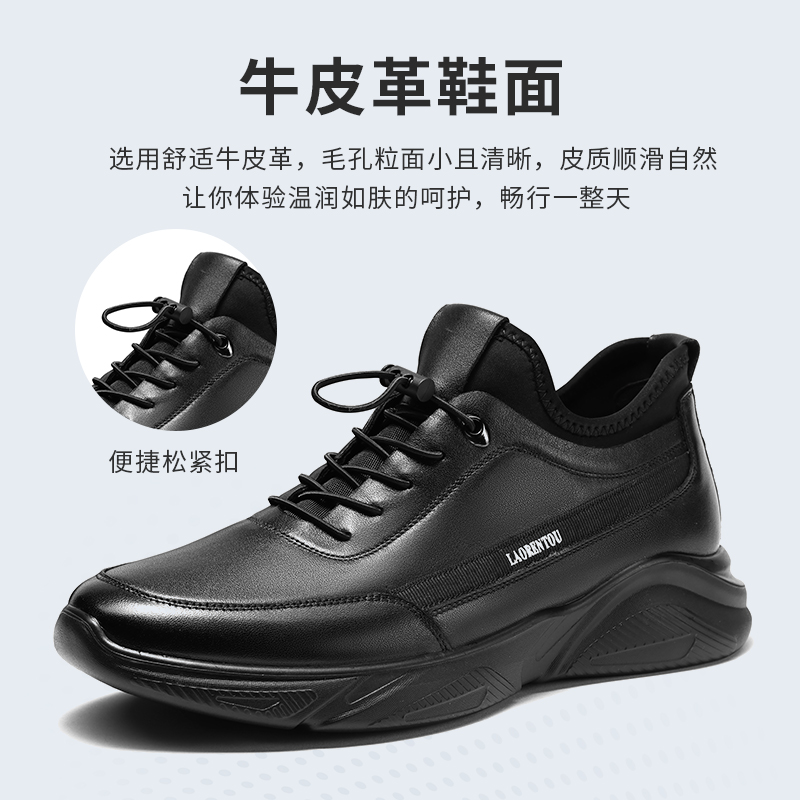 真皮轻便厚底运动鞋 老人头休闲皮鞋 百搭男士 新款 黑色男 男潮春秋季