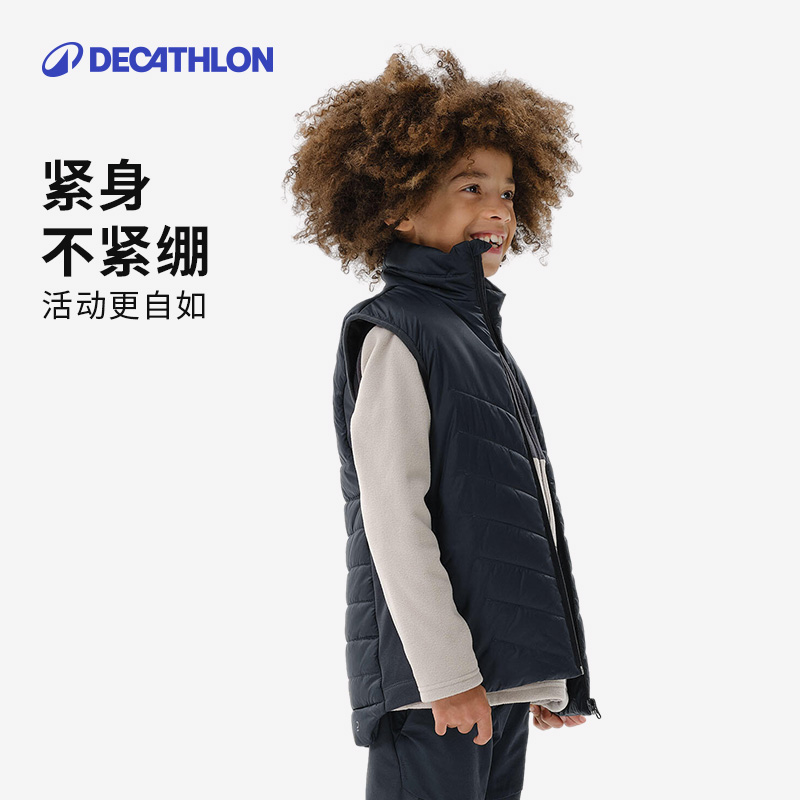 迪卡侬儿童保暖马甲男女春秋户外夹克轻薄透气防水运动背心KIDC