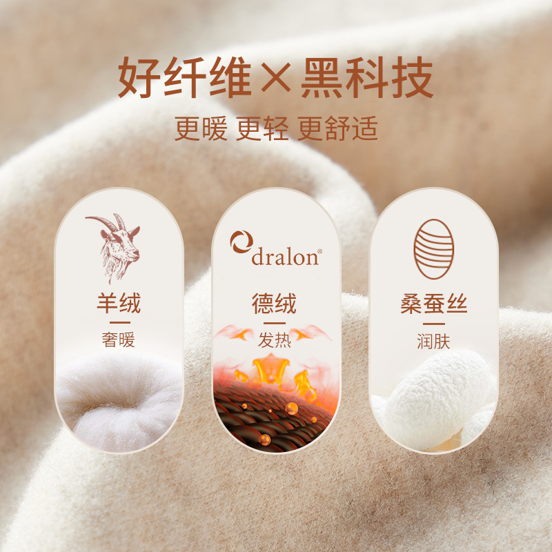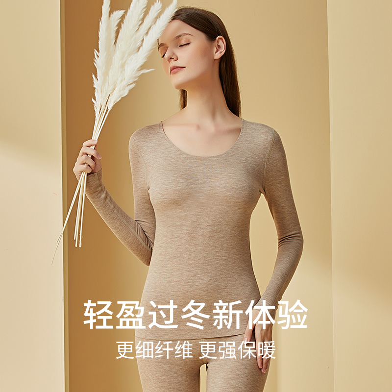加绒保暖内衣 上衣冬棉毛衫 羊绒秋衣秋裤 女士德绒无痕自发热打底衫