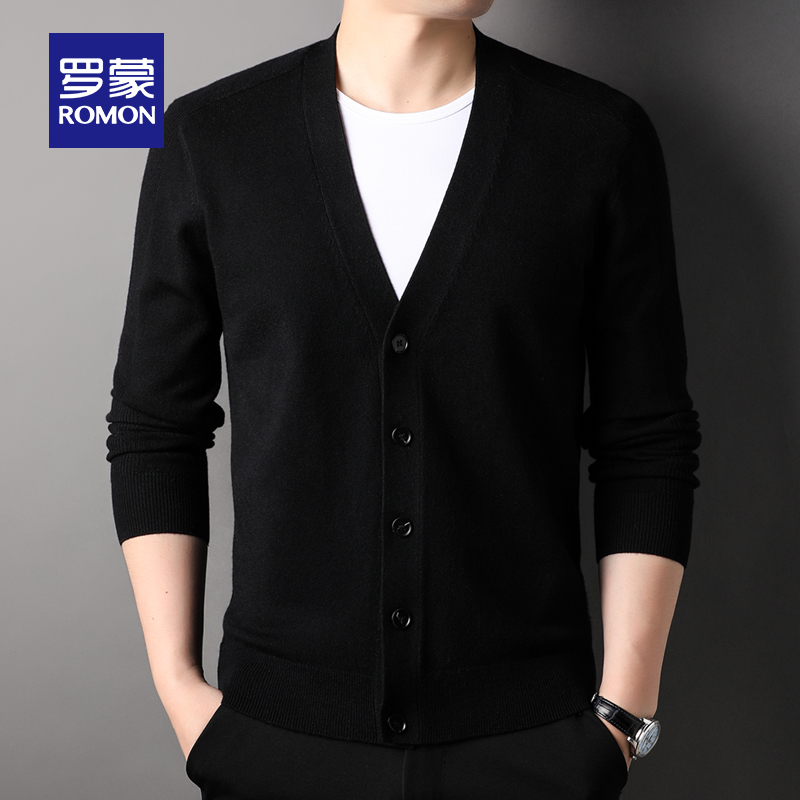 圆领时尚 HLA 25秋新款 针织衫 打底黑色毛衣男 海澜之家山不在高长袖