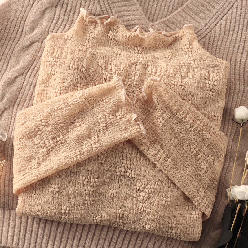 蕾丝打底衫 半高领薄款 女毛衣内搭纱衣 女2025新款 高档洋气网纱小衫