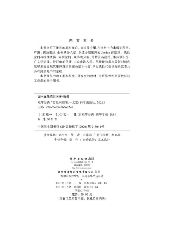 线性空间与线性变换 内积空间 分解范数及其应用 矩阵分析 几种矩阵范数科学出版 Jordan标准形 常用 社9787030666727 矩阵