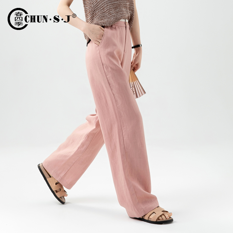 冰丝粉色高腰垂感休闲拖地裤 天丝亚麻阔腿裤 薄款 夏季 子 女2025新款