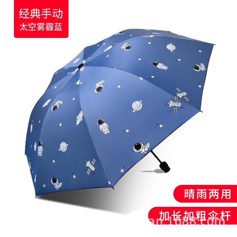 全自动晴雨两用伞宇航员太空人防晒紫外线黑胶三折叠广告定logo制