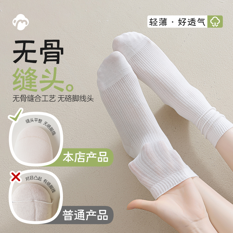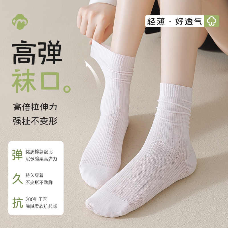 春秋长袜夏天 中筒袜白色月子堆堆袜配小皮鞋 桑蚕丝袜子女夏季 薄款