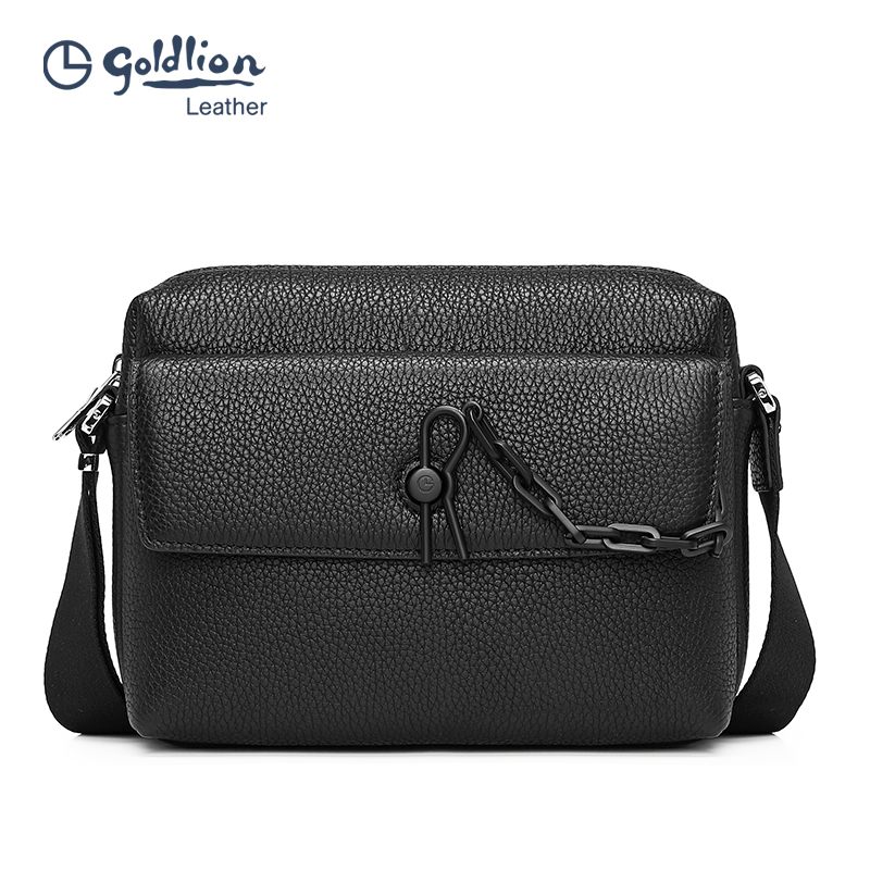 金利来男包单肩斜挎包头层牛皮真皮横款 休闲商务大容量背包 男士