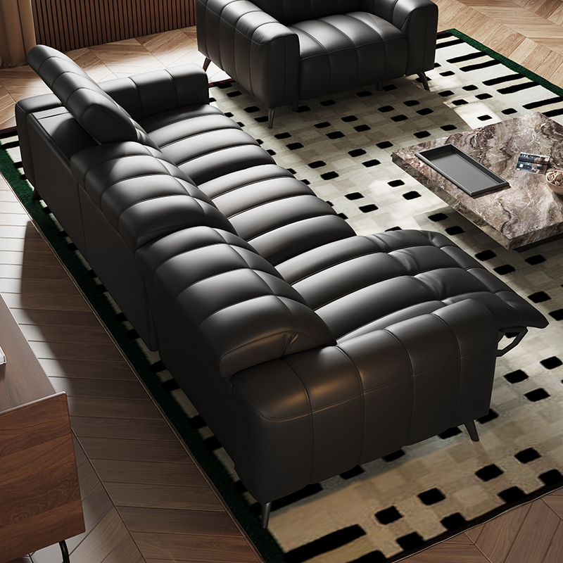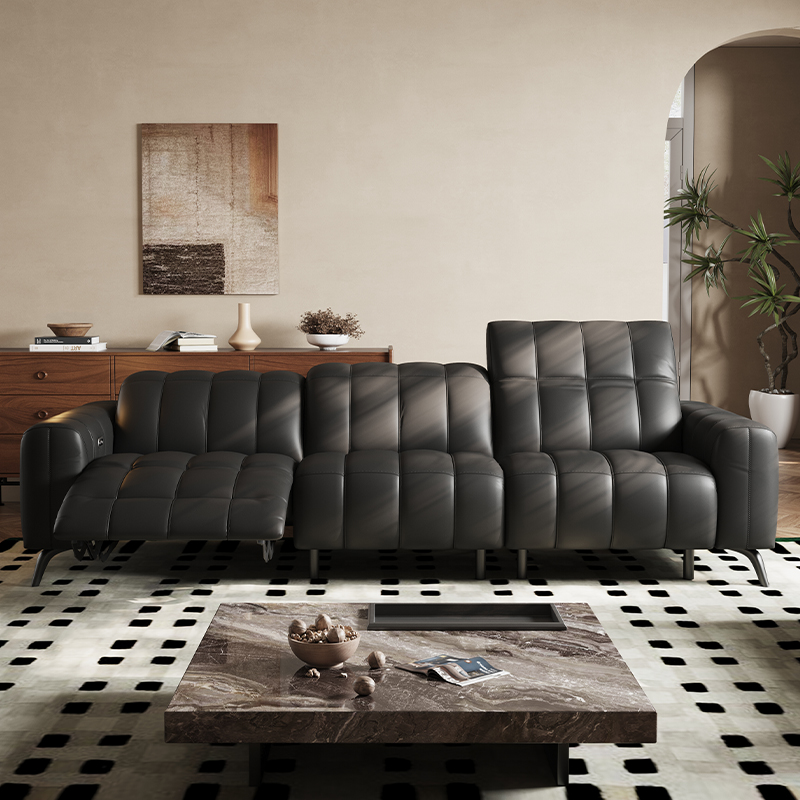钢琴键电动真皮沙发客厅黑色复古多功能三四人位高端大气直排沙发
