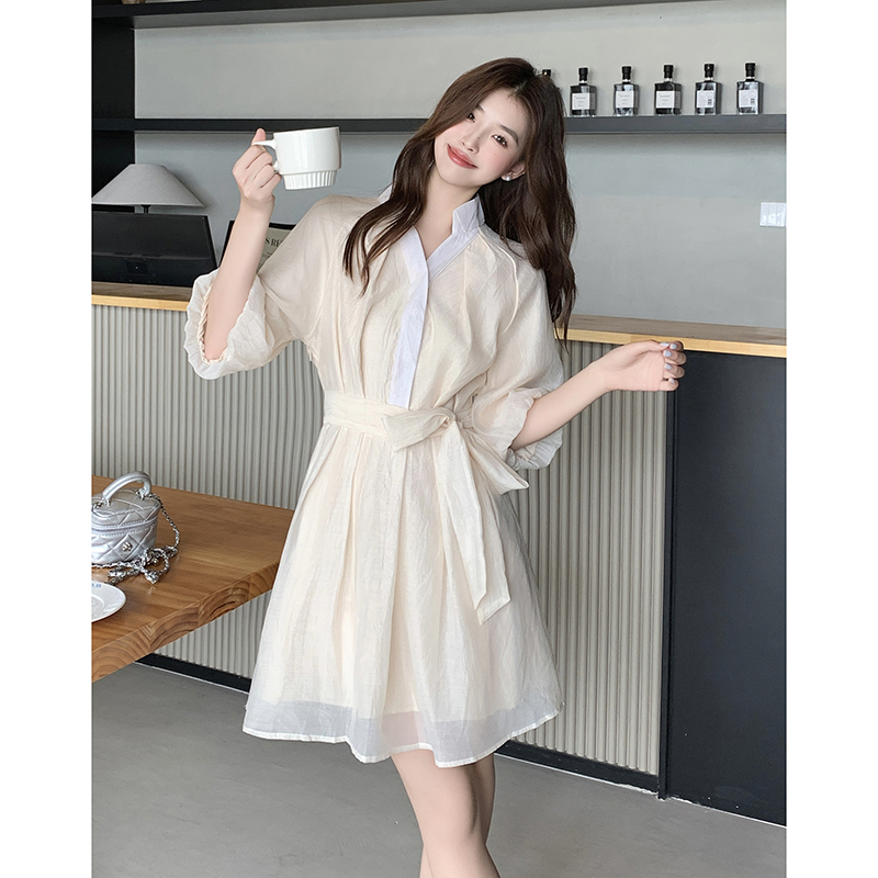 灯笼袖 短款 雪纺连衣裙女装 2025新款 小个子显瘦夏裙 夏季 高级感法式
