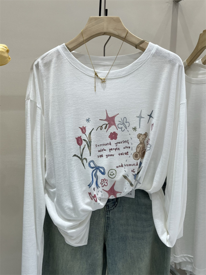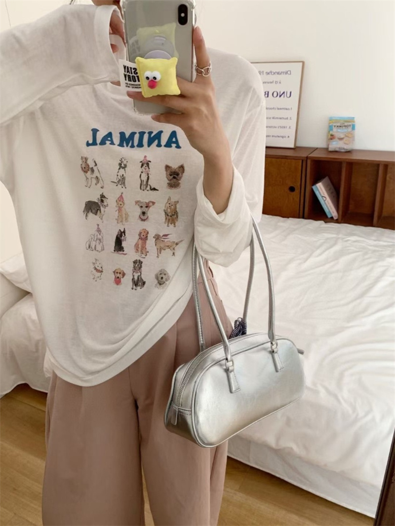 修身 打底衫 百搭上衣服 T恤女春秋内搭短款 设计感小众正肩纯棉长袖