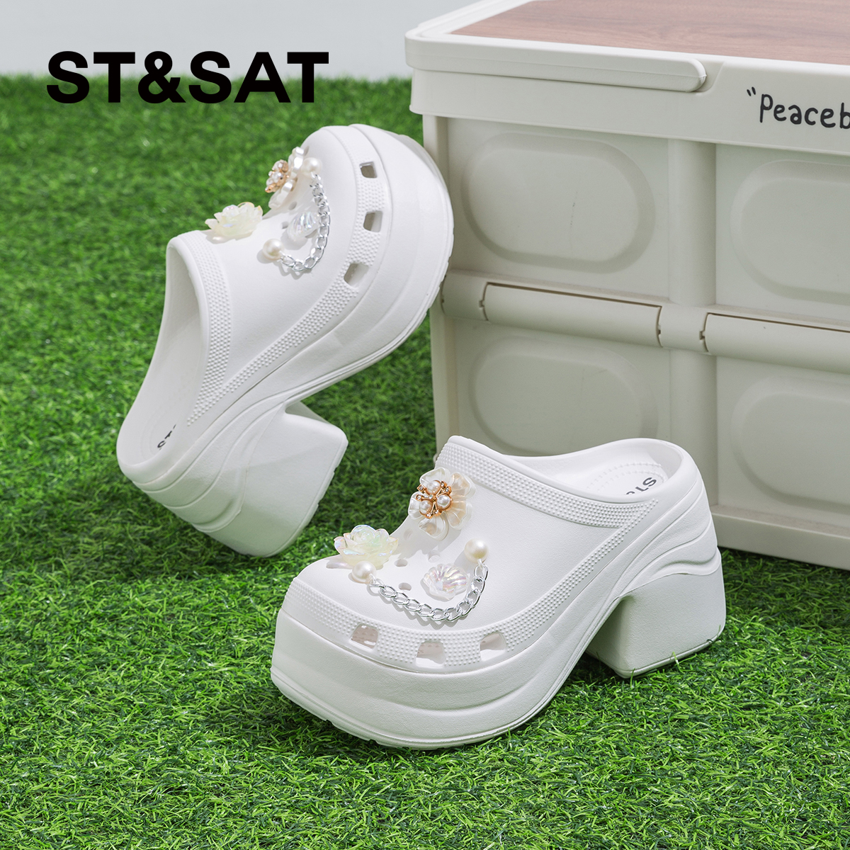 女小个子夏季 拖鞋 新款 外穿防滑沙滩鞋 时尚 朴西8cm厚底增高洞洞鞋