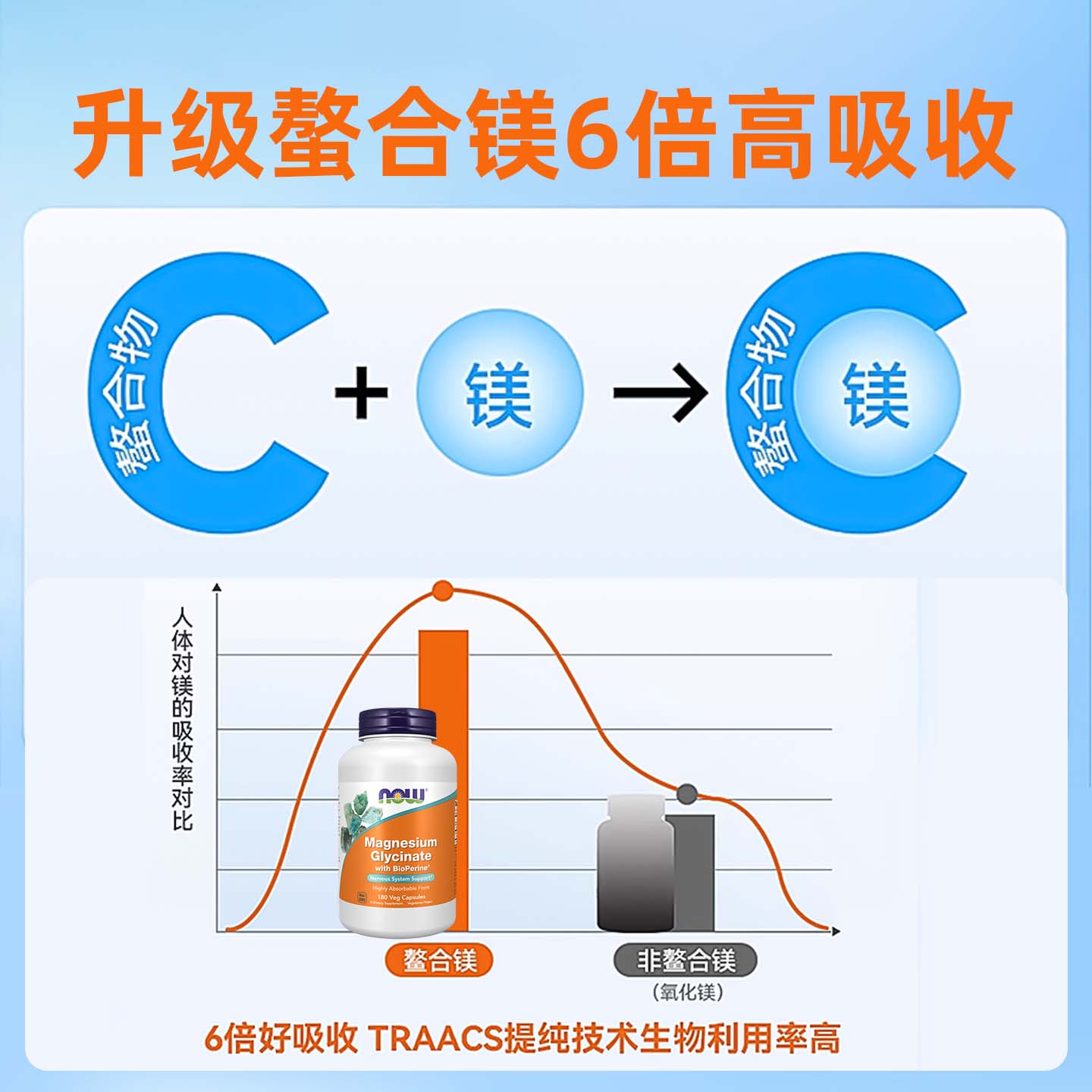 nowfoods诺奥甘氨酸镁补充剂螯合镁元 素胶囊胡椒碱食品级美国进口