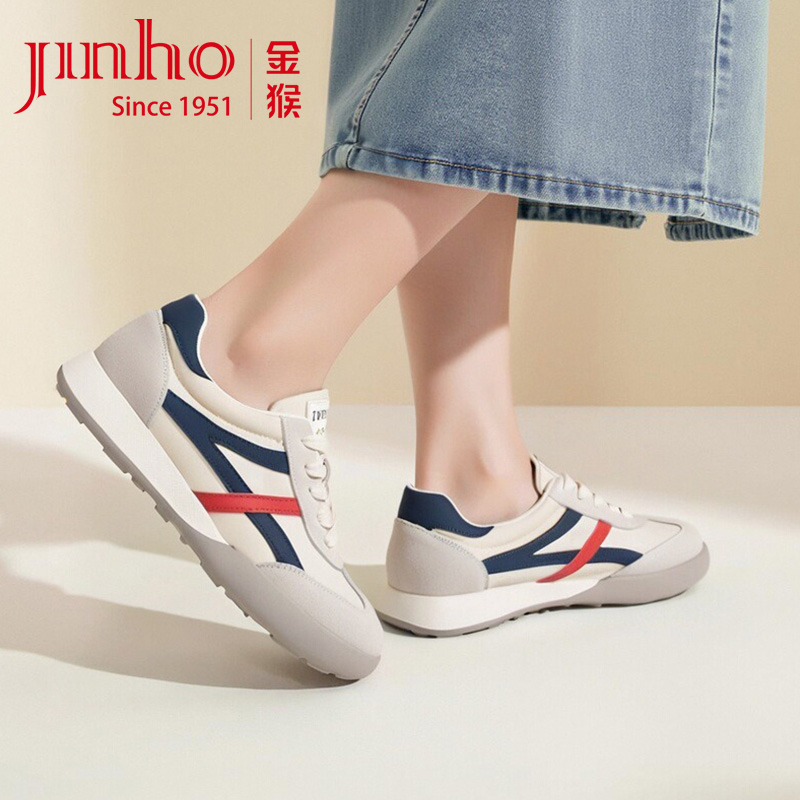 女2025春秋季 运动休闲鞋 新款 ins女学生厚底德训鞋 韩版 金猴小白鞋