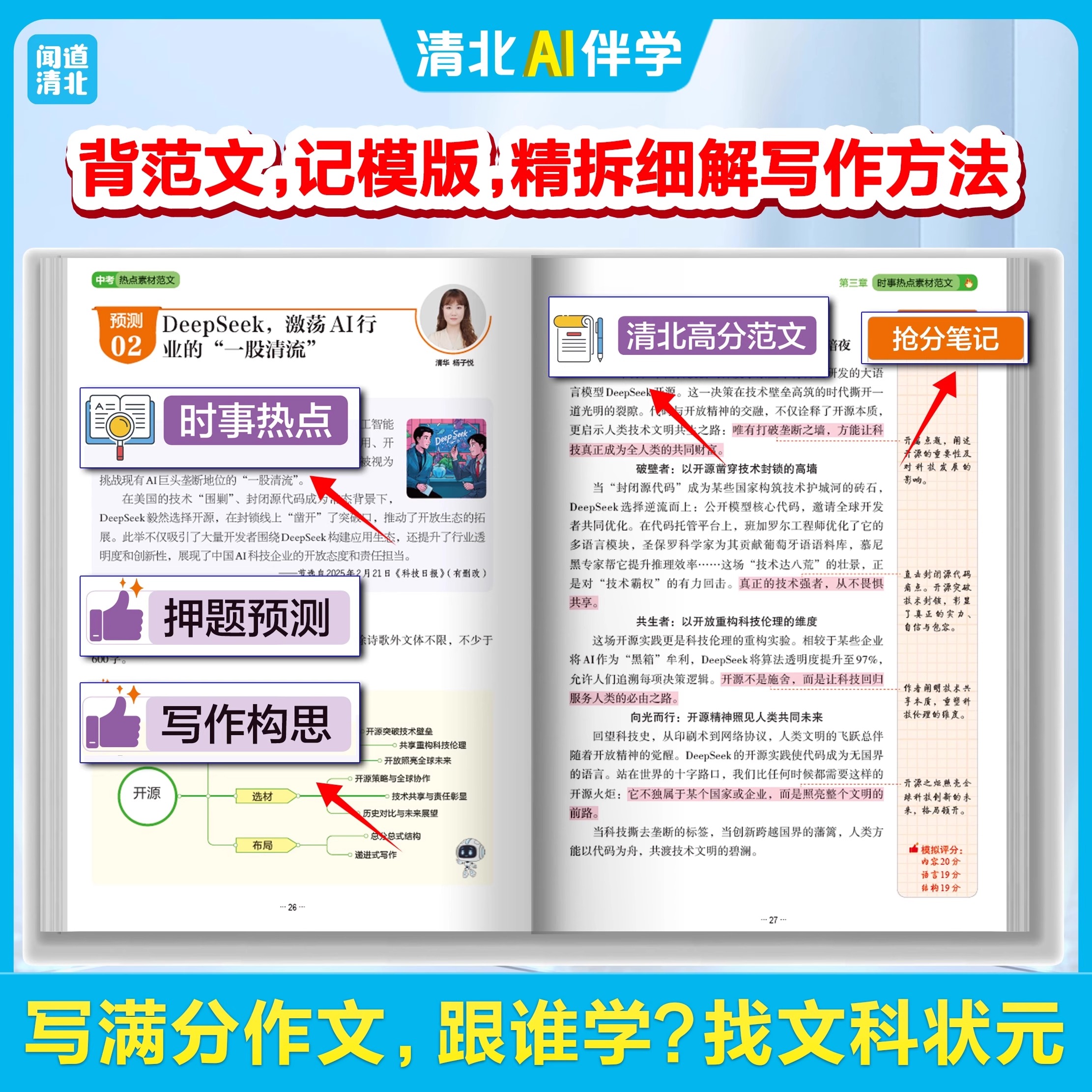 满分范文金句积累作文写作技巧指导书籍 精选清北状元 2025新清北AI伴学中考高考热点新闻素材范文时事素材考前预测作文模版 万能公式