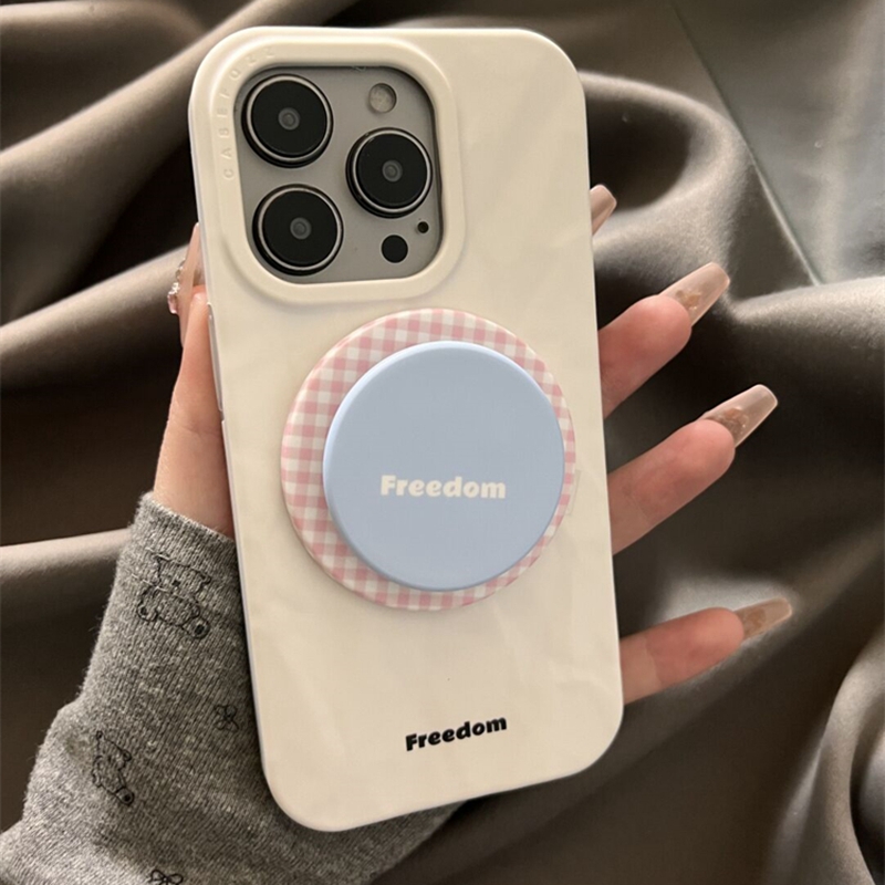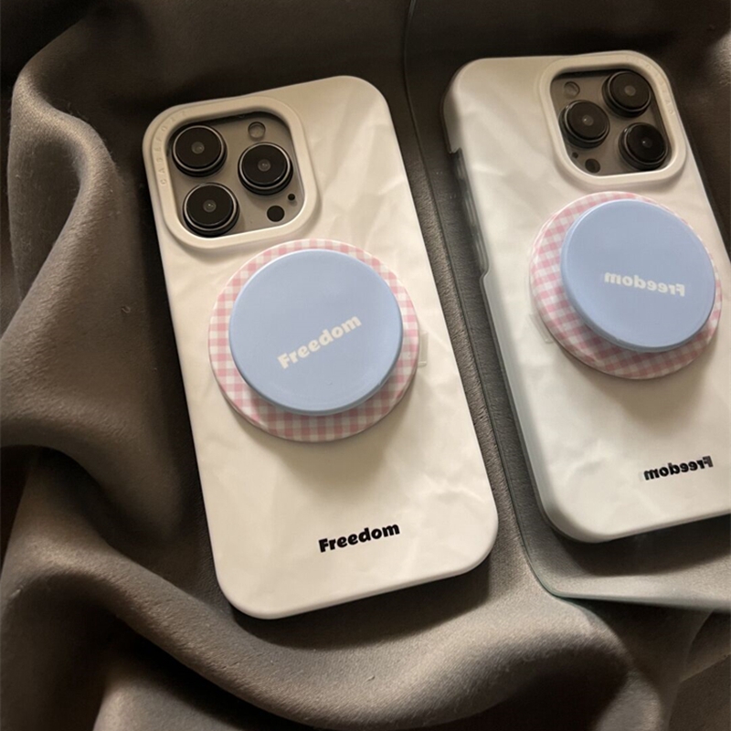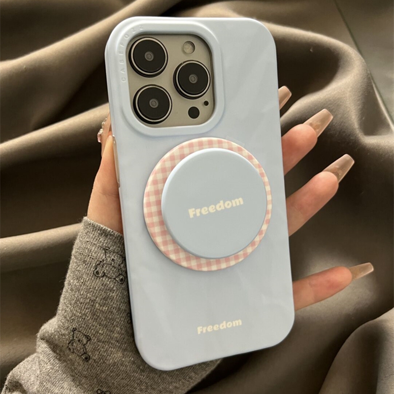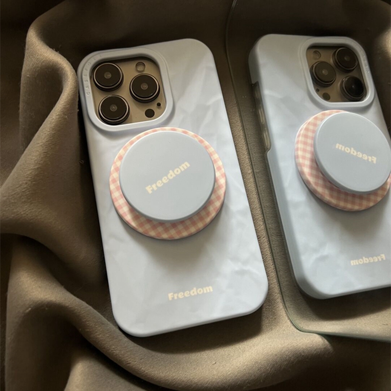 韩系ins简约纯色褶皱蓝底英文磁吸支架苹果16promax新款 小众13高级15p情侣防摔套 iPhone17promax手机壳14个性