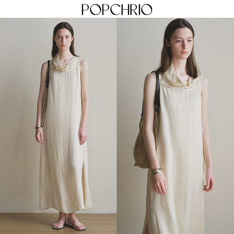 罗衣经典 连衣裙女简约高质感内搭中长裙子11060 黑色收腰大摆无袖